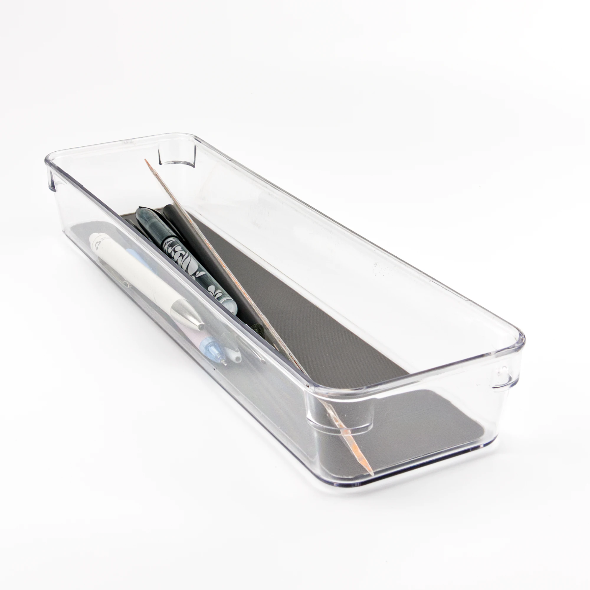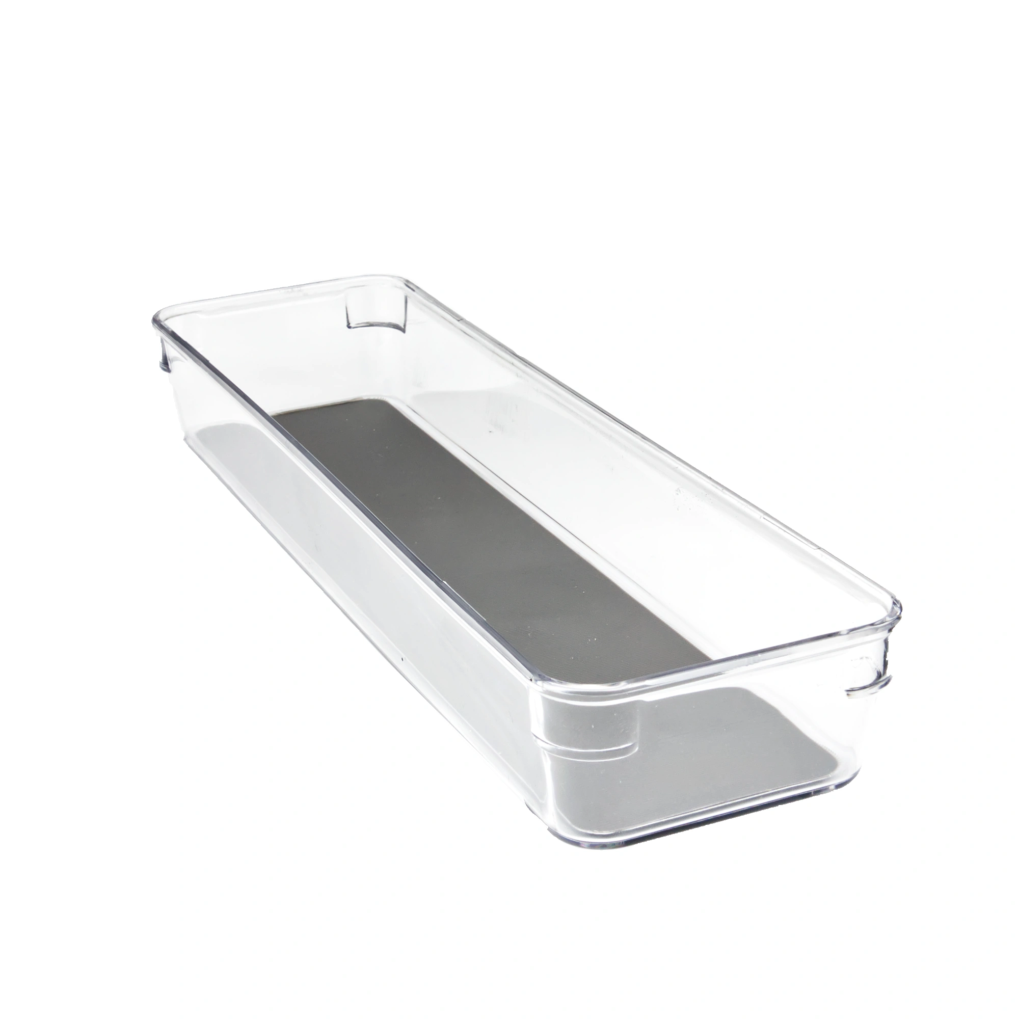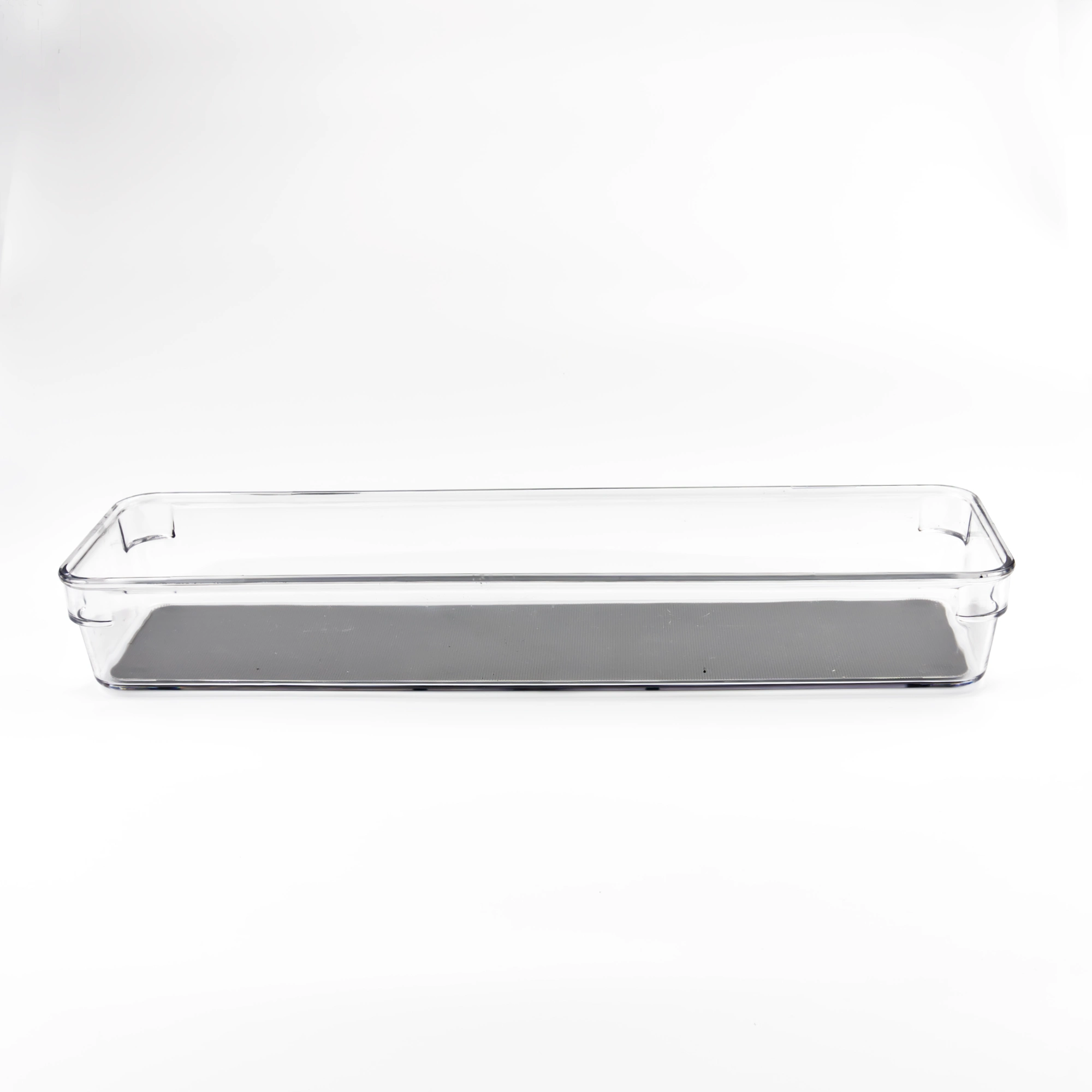 Praktisks un stilīgs atvilktnes organizators 32.5 x 9 cm no caurspīdīga PET/TPE materiāla ar tumši pelēku neslīdošu pamatni – ideāli piemērots galda piederumu un sīklietu kārtošanai. Atvilktnes organizators palīdz uzturēt kārtību ikdienā.