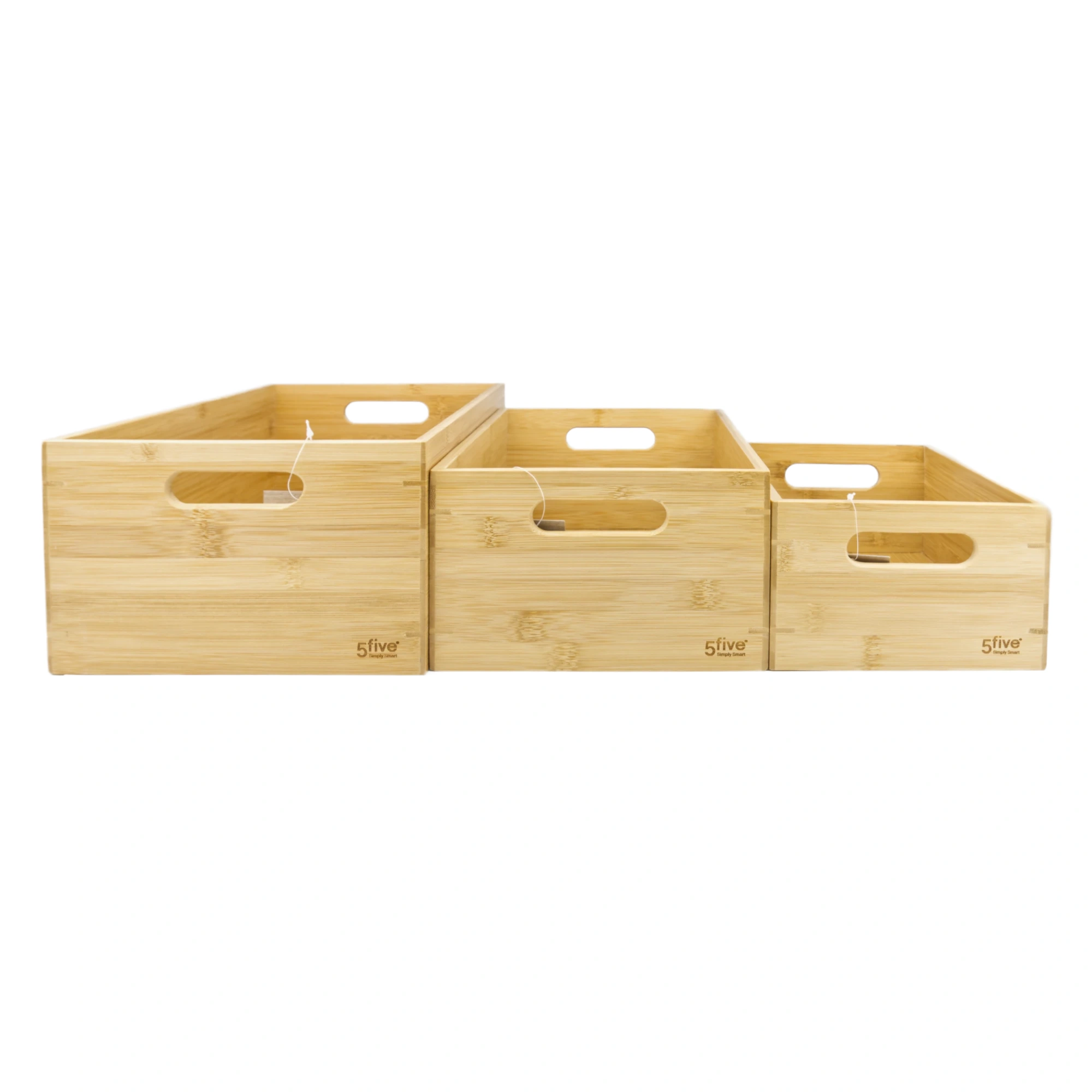 Praktisks un estētisks koka uzglabāšanas kastu komplekts (3 gab.) no dabīga bambusa ar iebūvētiem rokturiem. Trīs dažādi izmēri ļauj strukturēti organizēt māju, biroju vai pieliekamo.