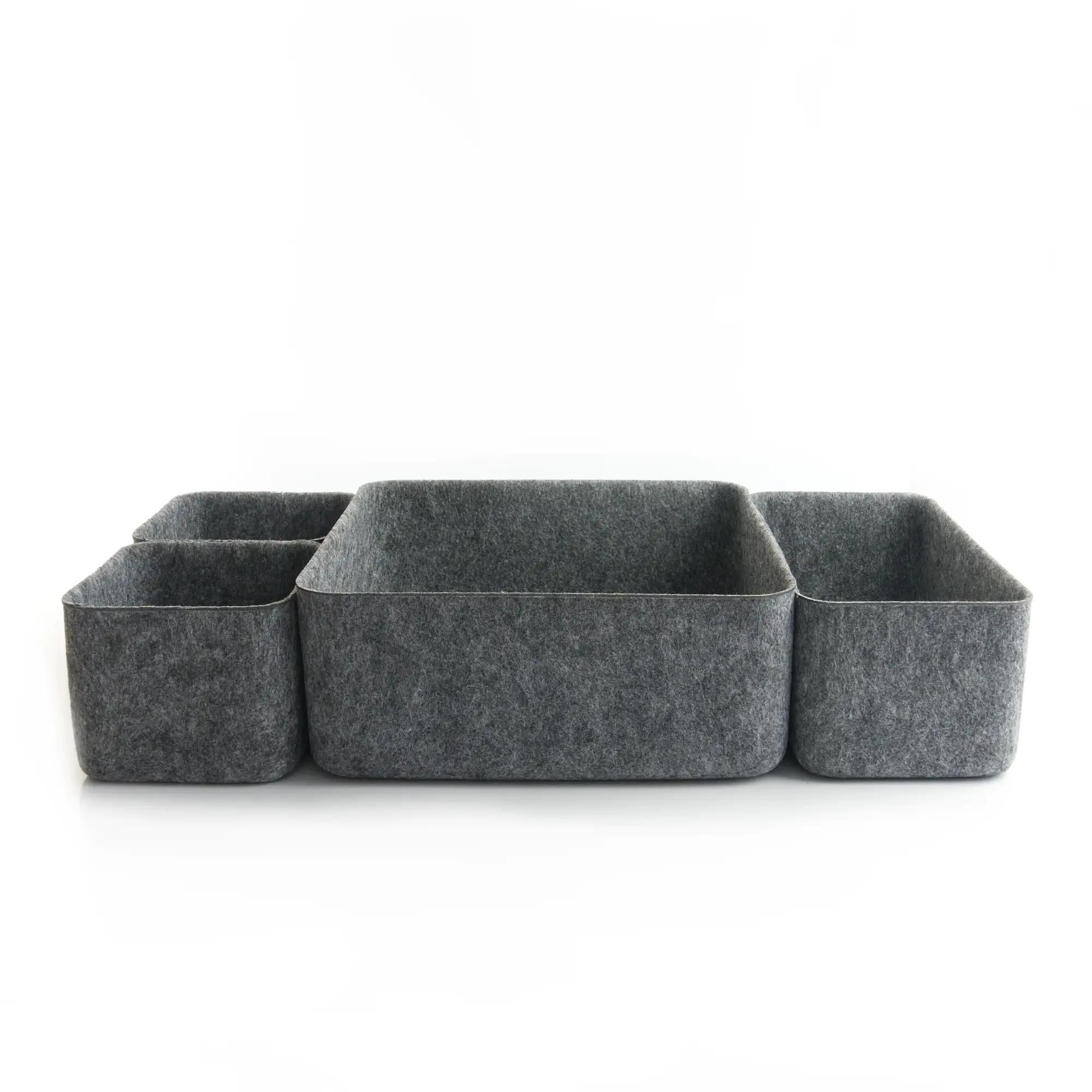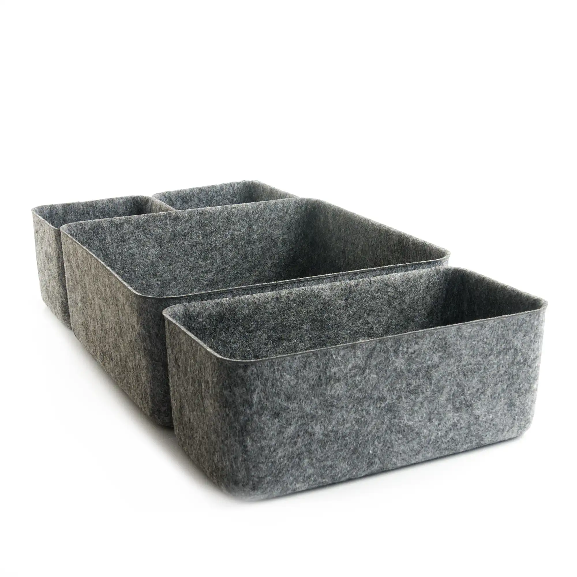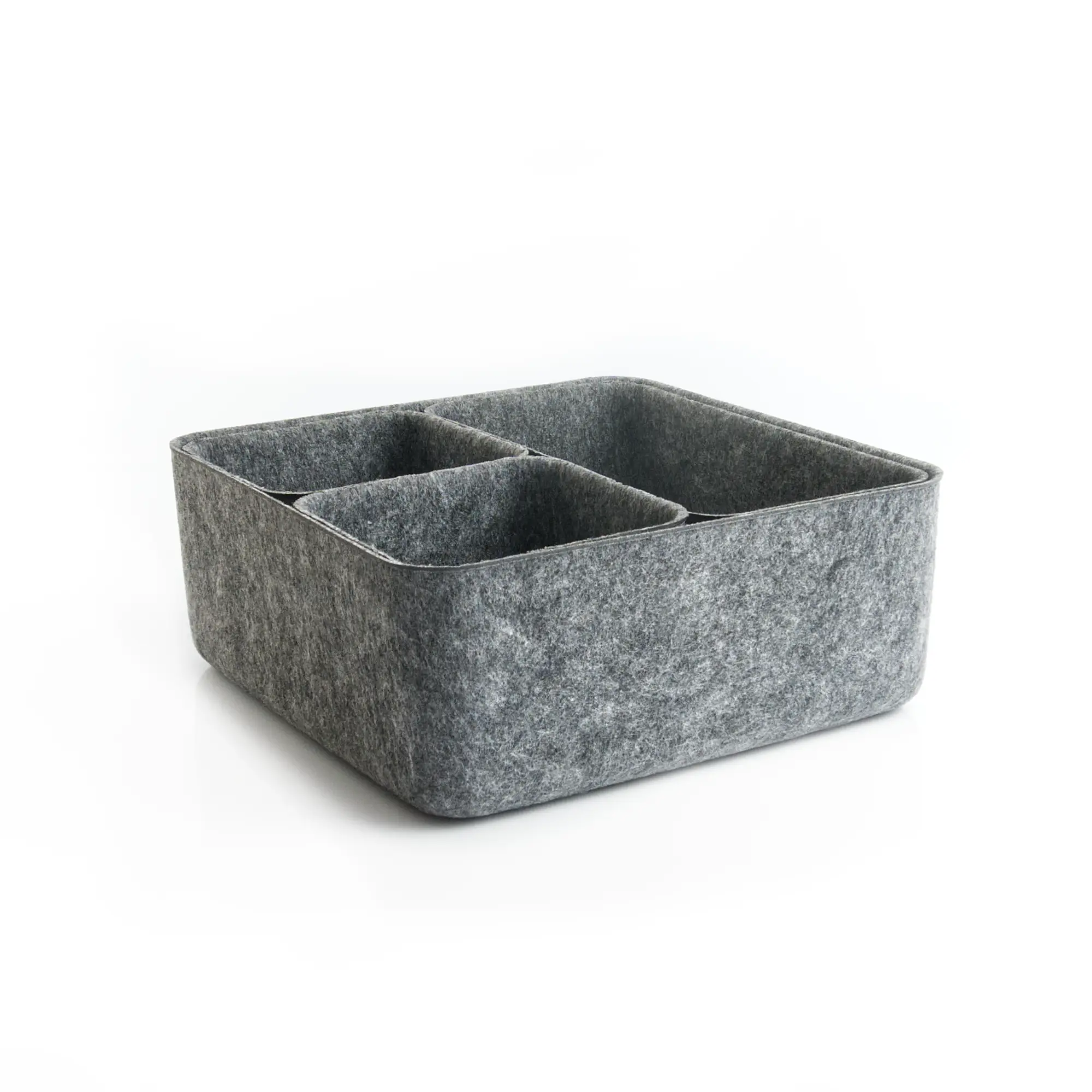 Praktisks filca atvilktņu organizatoru komplekts, kas palīdz sakārtot sīkus priekšmetus un pielāgot atvilktņu saturu ikdienas vajadzībām. Dažādu izmēru ieliktņi nodrošina elastīgu un pārskatāmu uzglabāšanu mājās vai birojā.