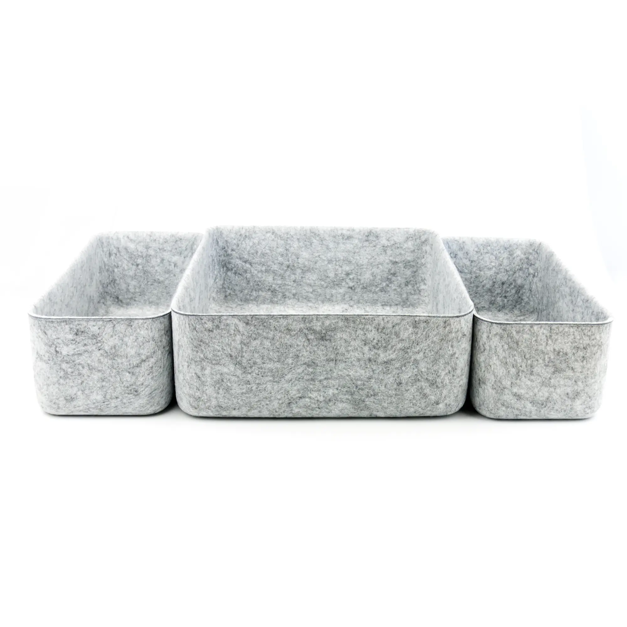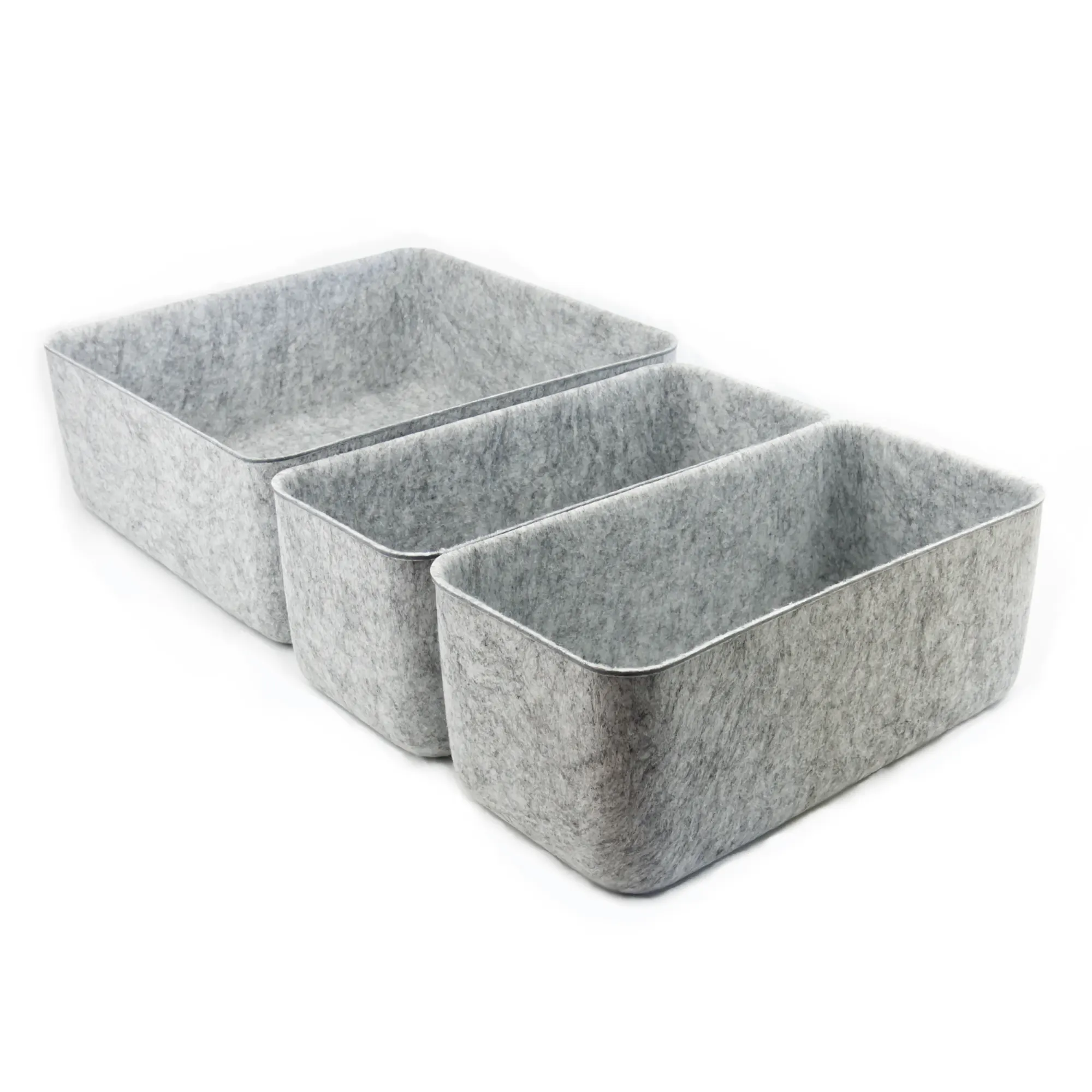 Elegants un praktisks filca uzglabāšanas organizatoru komplekts – 3 pelēki konteineri dažādu mantu sakārtošanai mājās vai birojā. Šis filca organizatori apvieno dizainu ar funkcionalitāti ikdienas kārtībai.