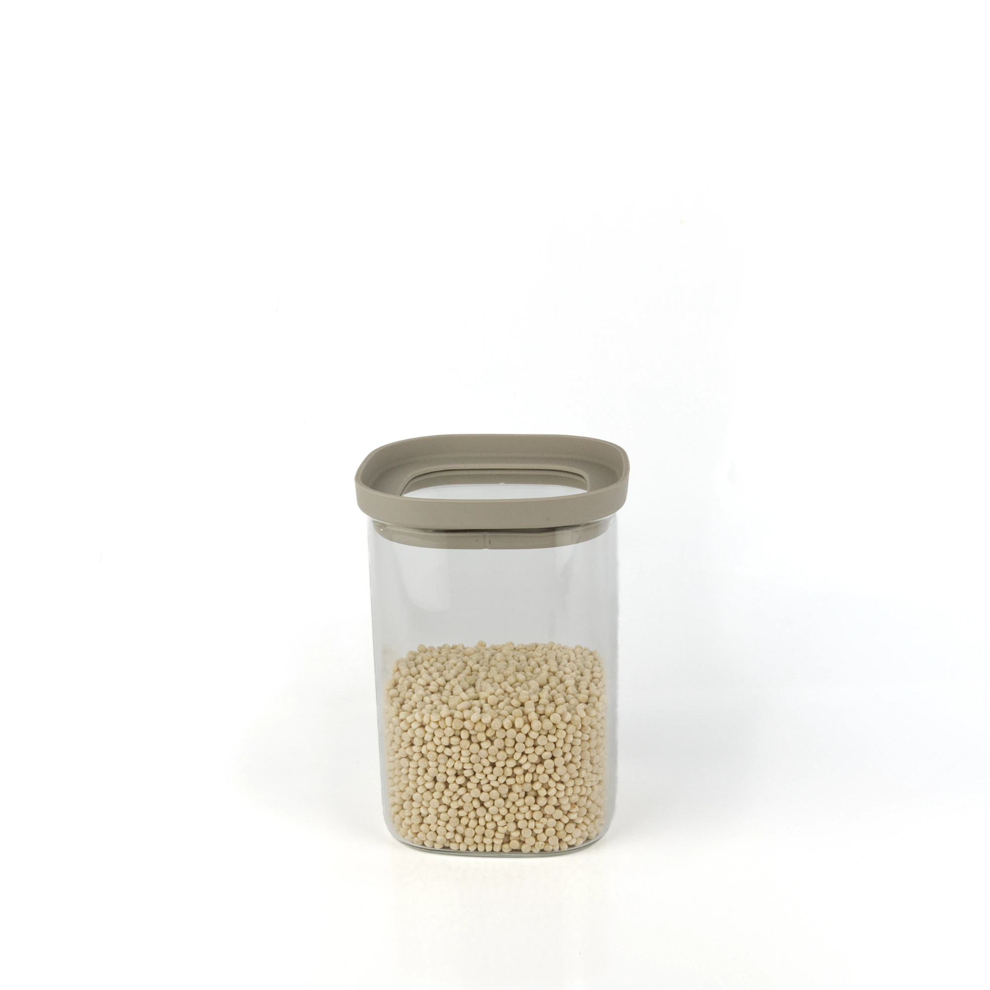 Stikla pārtikas trauks 1L ar blīvi pieguļošu silikona vāku ir piemērots ikdienas sausās pārtikas uzglabāšanai. Kompakta, bet ietilpīga izvēle virtuves organizēšanai.