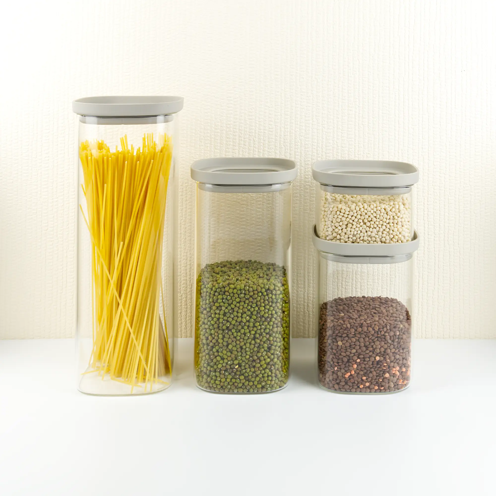 Caurspīdīgais stikls ļauj viegli pārskatīt saturu, savukārt silikona vāks palīdz samazināt gaisa un mitruma piekļuvi, saglabājot produktu kvalitāti ilgāk. Vertikālā forma ļauj efektīvi izmantot plauktu augstumu un uzturēt kārtību virtuves skapjos.