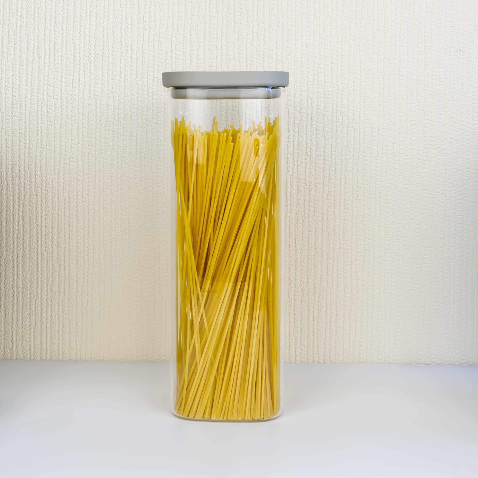 2 litru ietilpība ir īpaši piemērota garajiem makaroniem (piemēram, spageti), rīsiem, griķiem, auzu pārslām, kafijai, cukuram vai citiem sausajiem produktiem. Pateicoties augstajai un šaurajai formai, šis stikla pārtikas trauks 2L ar blīvu vāku efektīvi izmanto vertikālo telpu un ir piemērots arī mazākām virtuvēm.