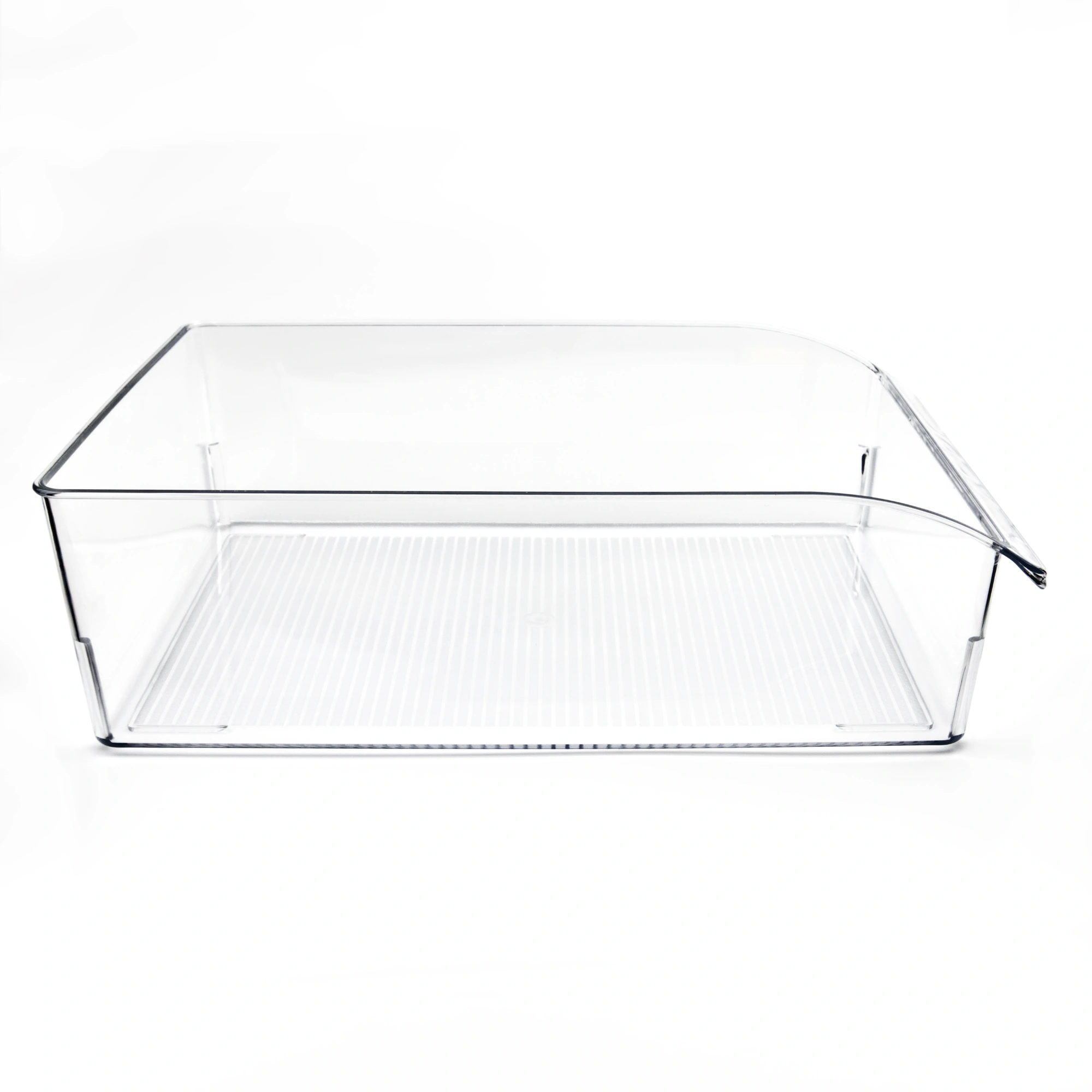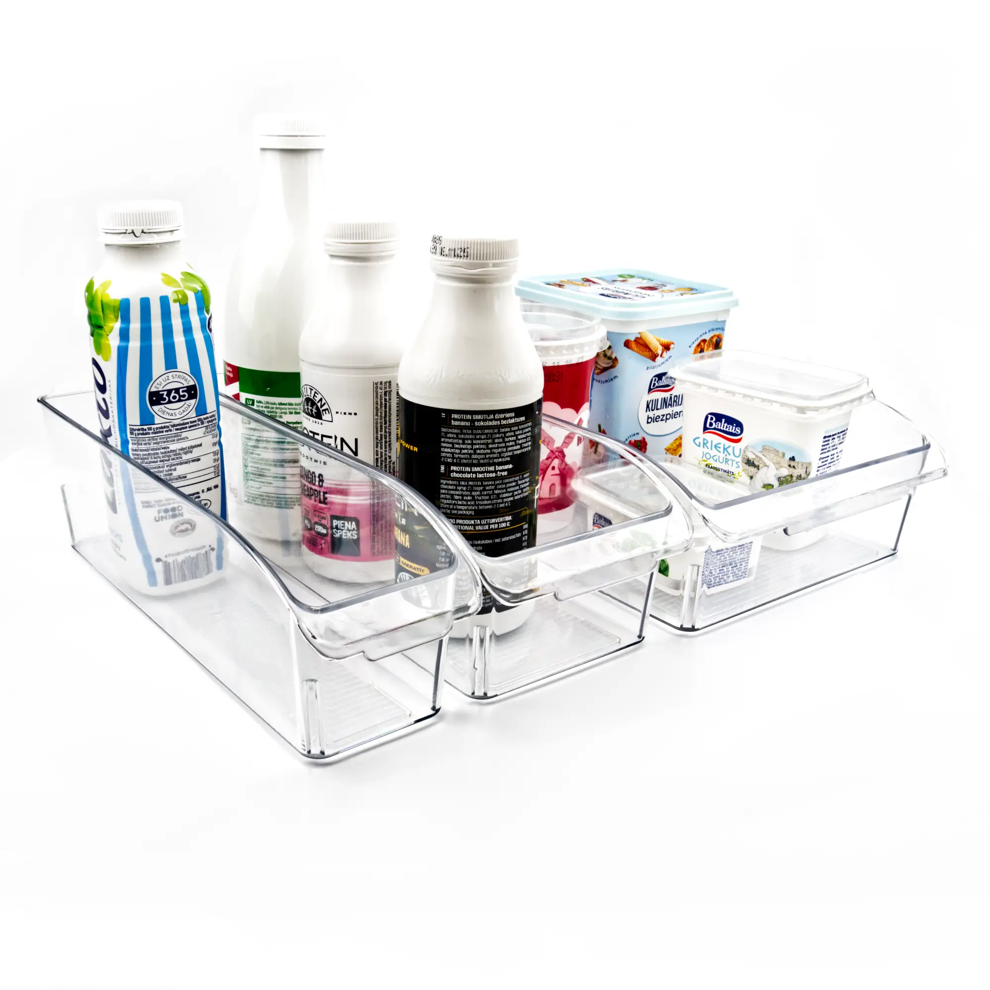 Daudzfunkcionāls ledusskapja uzglabāšanas trauku komplekts palīdzēs ieviest kārtību tavā ledusskapī! Šajā ledusskpaja organizatoru komplektā ietilpst trīs caurspīdīgi trauki, kas izgatavoti no augstas kvalitātes, pārtikai drošas un izturīgas PET plastmasas. Lielākā trauka izmērs ir 21 x 30.5 x 9 cm – ideāli piemērots augļu, dārzeņu, piena produktu vai iepakotas pārtikas glabāšanai.