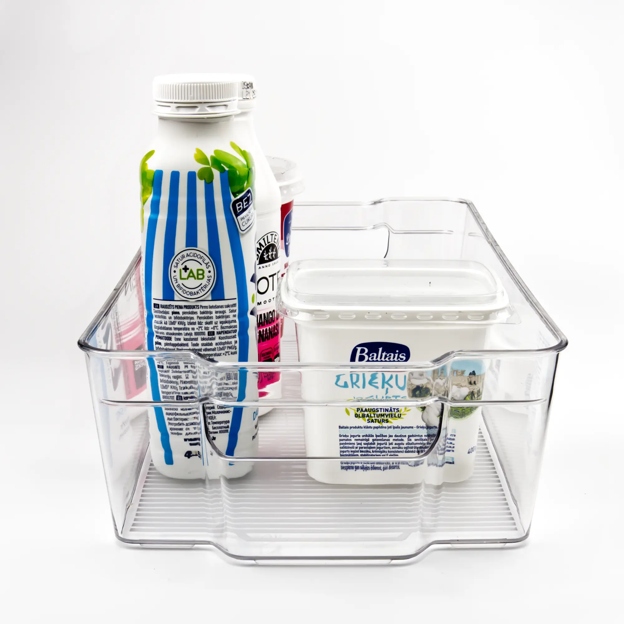 Praktiska un ietilpīga ledusskapja uzglabāšanas kaste – organizators 8L, izgatavota no caurspīdīgas un izturīgas PET plastmasas. Izmēri: 37 x 22 x 9.9 cm – ideāli piemērota ikdienas produktu kārtošanai. Ledusskapja uzglabāšanas kaste 8L nodrošina kārtību un pārskatāmību bez liekām pūlēm.