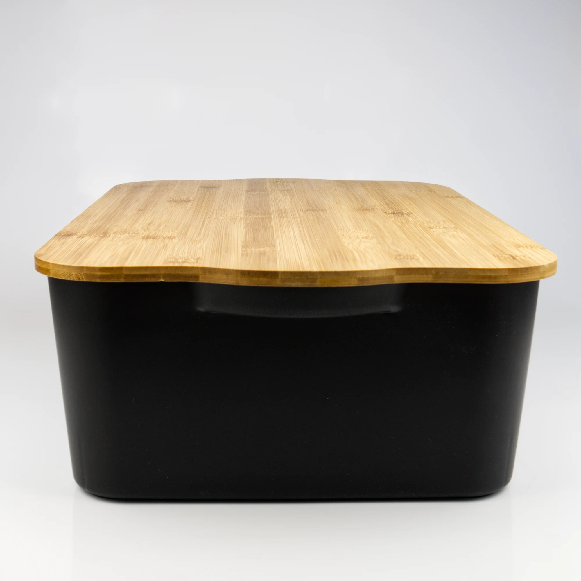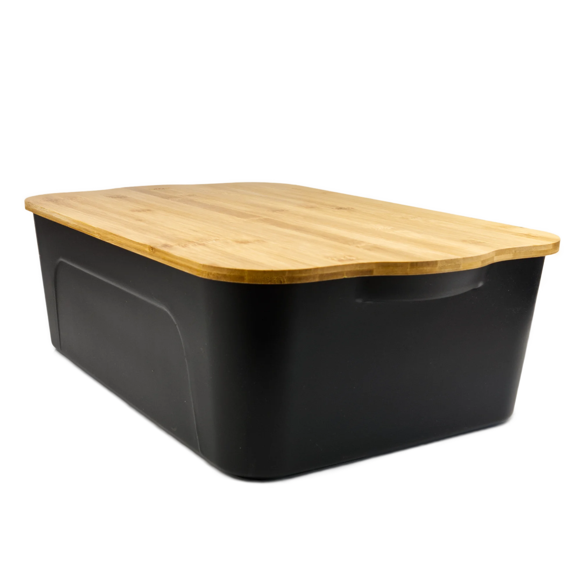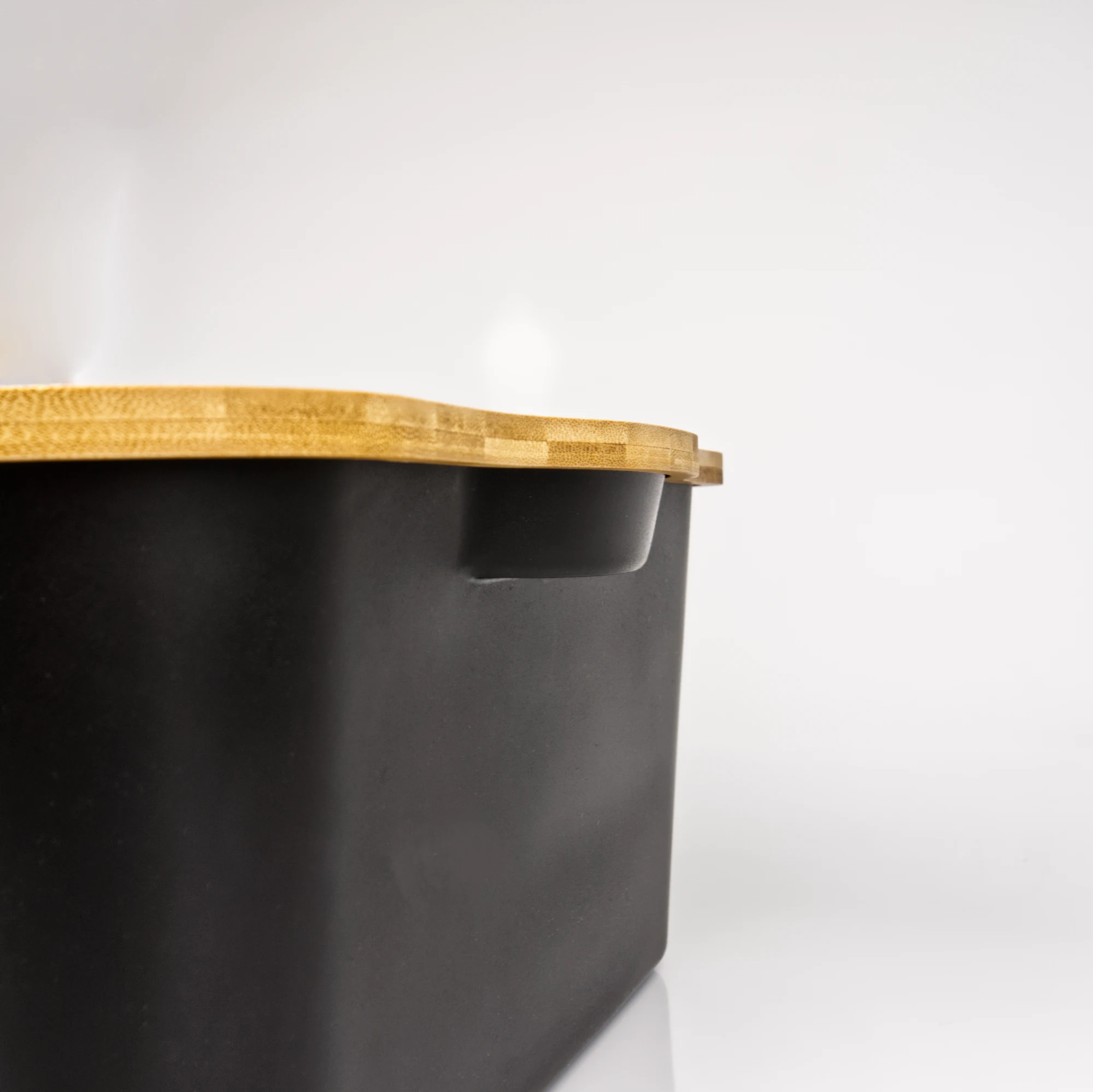 Plastmasas kaste ar bambusa vāku – moderna un ietilpīga (13.5L), ar elegantu melnu korpusu un dabīgu akcentu. Lieliska izvēle stilīgai organizācijai jebkurā telpā.