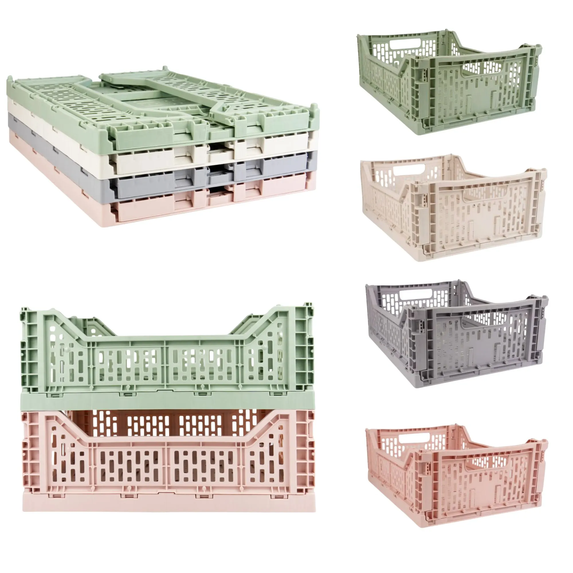 Saliekamā konstrukcija ļauj to ātri salocīt un uzglabāt, kad tā netiek izmantota, ietaupot vietu. Kastes paredzētas krāmēt vienu uz otru gan saliktā, gan izjauktā veidā. Komplektā ietilpst četras kastes dažādās krāsās – zaļa, balta, pelēka un rozā, kas lieliski iederas jebkurā interjerā. Saliekama plastmasas kaste piemērota ikdienas lietošanai un mantu organizēšanai dažādās vidēs.
