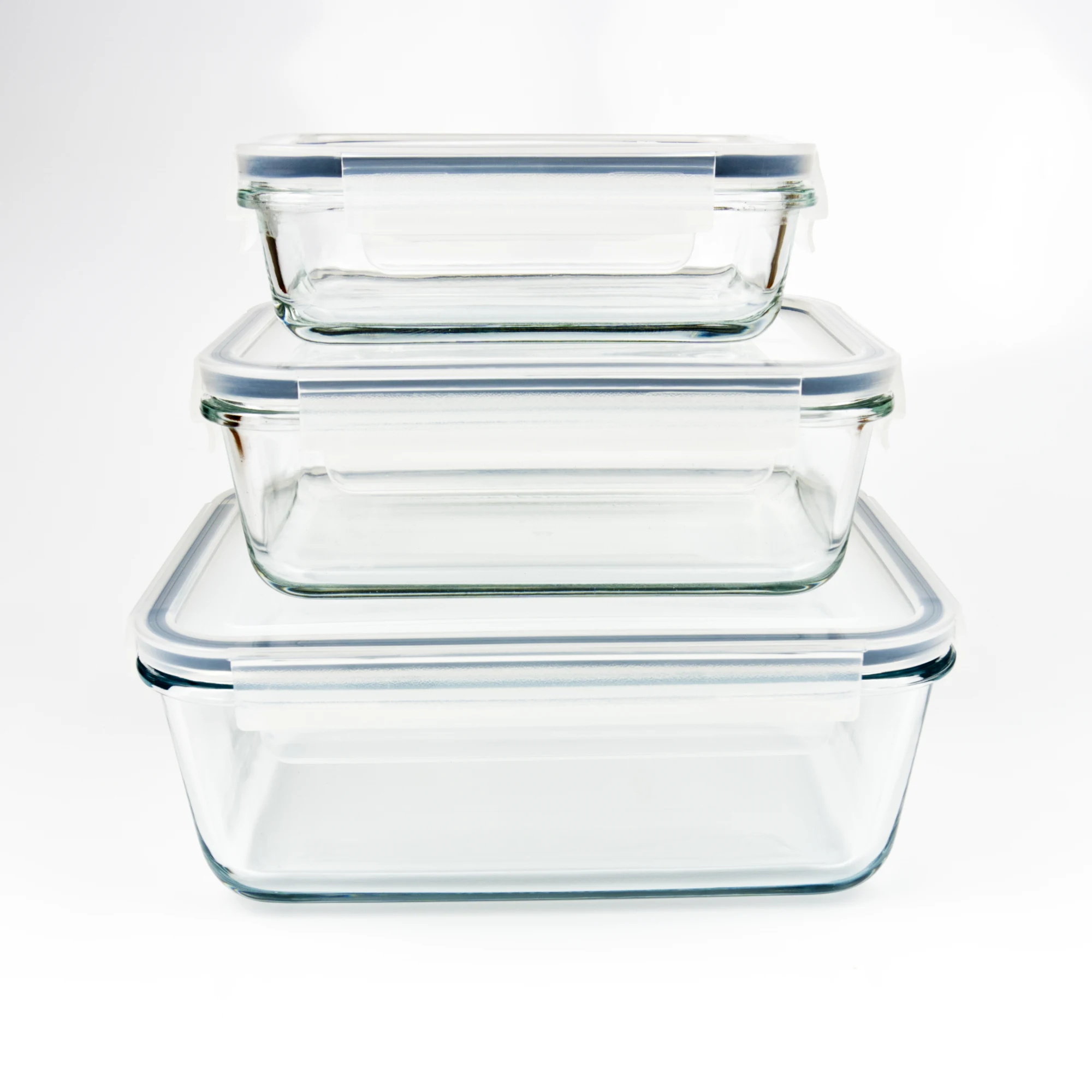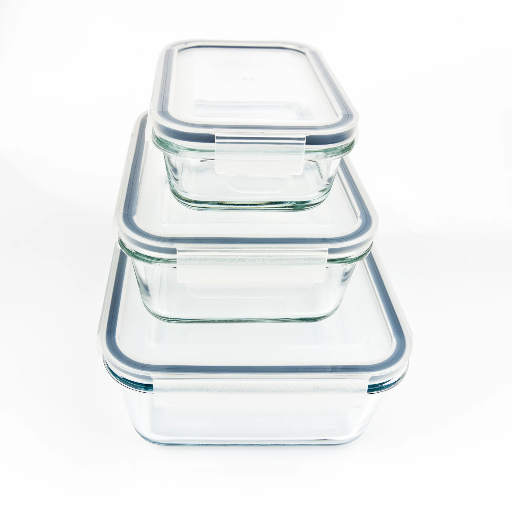 Izdevīgs 3 stikla trauku komplekts ar hermētiskiem vākiem – piemēroti cepeškrāsnij, mikroviļņu krāsnij un saldētavai. Tilpumi: 0.35 L, 0.8 L, 1.8 L.
