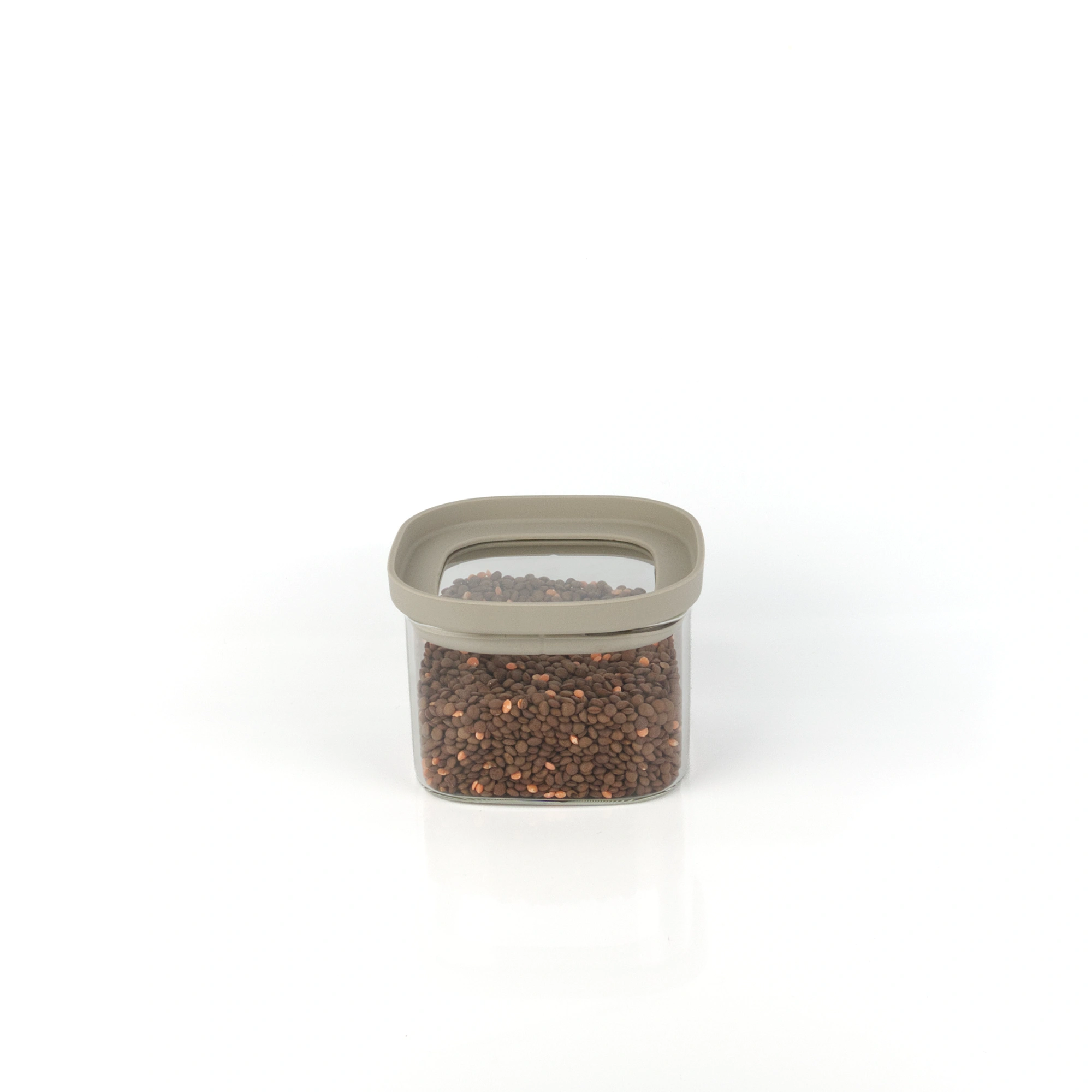 Neitrālais bēšais silikona vāks piešķir modernu un harmonisku izskatu, padarot šo stikla burku ar vāku par funkcionālu un estētisku papildinājumu jebkurai virtuvei.
