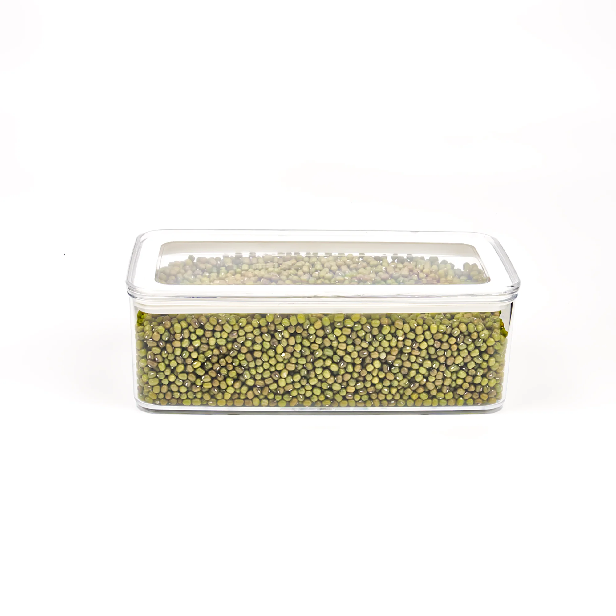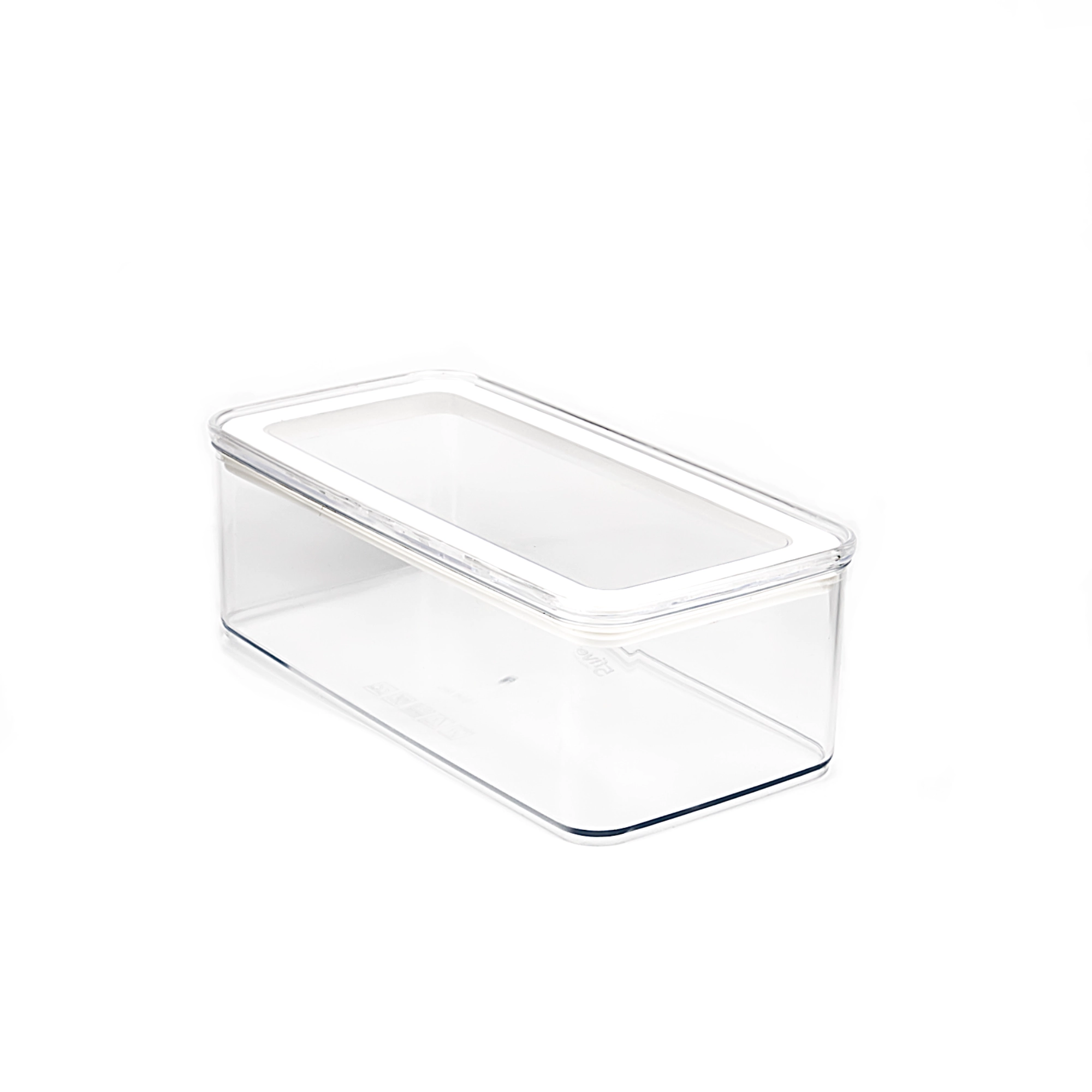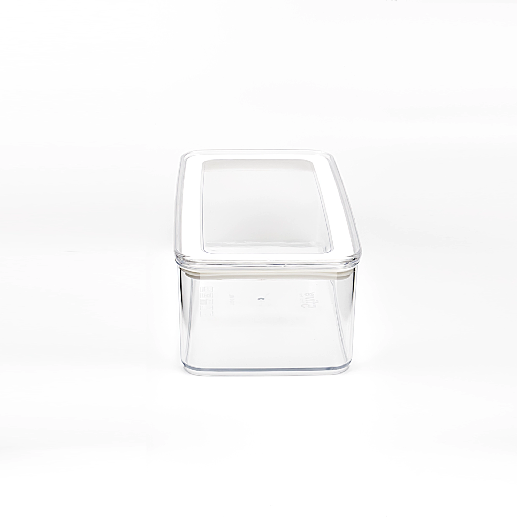 Plastmasas uzglabāšanas kārba ir caurspīdīga, tāpēc vienmēr redzēsi, kas tajā atrodas – ideāli piemērota miltiem, riekstiem, graudaugiem, kafijai, uzkodām vai pat neēdamām lietām, piemēram, sīkiem virtuves piederumiem vai bērnu radošajiem materiāliem. Pateicoties taisnstūrveida formai un plakaniem vākiem, vairākas kārbas var viegli sakraut vienu uz otras, taupot vietu skapī, ledusskapī vai plauktā.