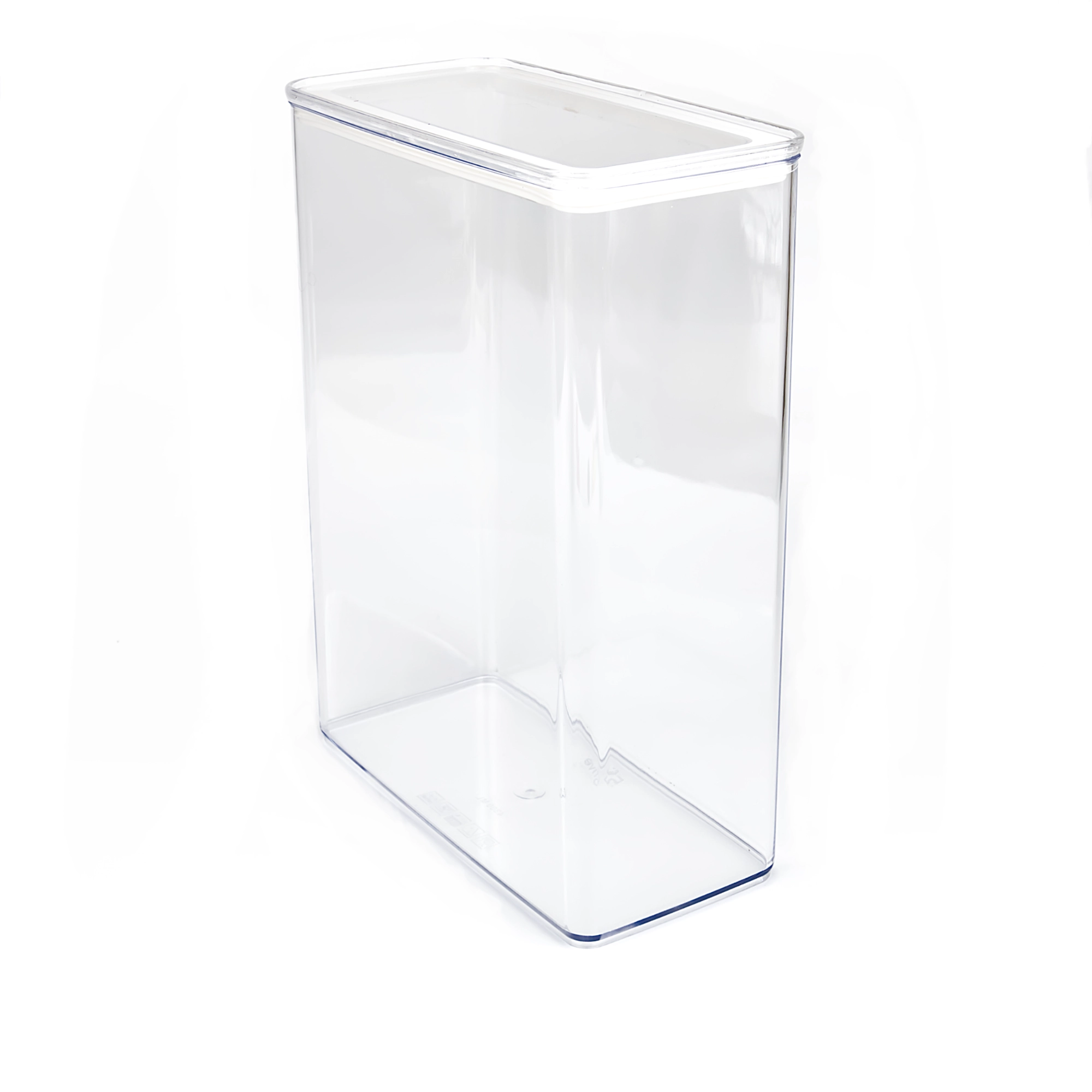 Caurspīdīga uzglabāšanas kārba ar 4300 ml tilpumu ir ideāls risinājums pārtikas produktu sakārtošanai un ilgstošai glabāšanai mājās. Taisnstūra forma (27 × 10 × 20 cm) ļauj kārbu ērti novietot skapī, pieliekamajā vai uz virtuves plaukta, maksimāli izmantojot pieejamo vietu.